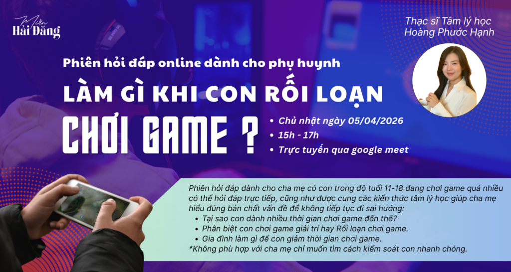 Phiên hỏi đáp online dành cho cha mẹ có con trong độ tuổi 11-18 đang chơi game quá nhiều có thể hỏi đáp trực tiếp với Thạc sĩ tâm lý Hoàng Phước Hạnh, cũng như được cung các kiến thức tâm lý học giúp
